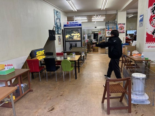 第二展示場にちょっとひと休みスペースをつくりました。ただし展示車が少なめの時だけですが・・・