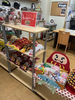 初日の4日はお客様感謝祭。お店で屋台村を設置してフランクフルトや焼き餅、甘酒、トン汁を振る舞ってゲームやおみくじでお菓子や工賃クーポンをプレゼントしました。新春フェアは12日まで開催。