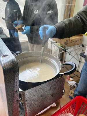 私たちスタッフが工具をトングやお玉に持ち替えて日頃の感謝を込めて振る舞います。