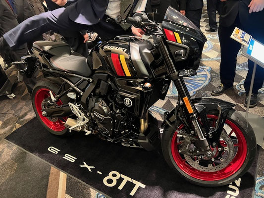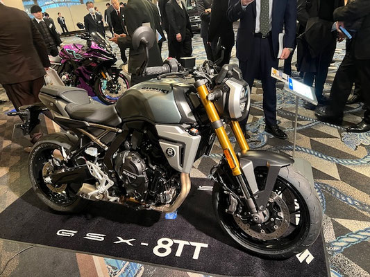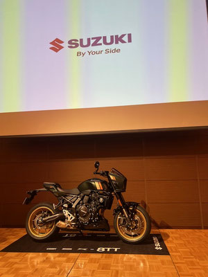 そこでGSX-8T/8TTの実車確認と開発者の方から開発のエピソードを直接お話を聞いてきました。