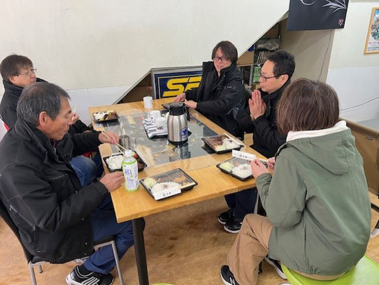 スパナ鬼がやってきて豆まき。今年もお昼は恵方巻をいただいて安全と健康を願いました。