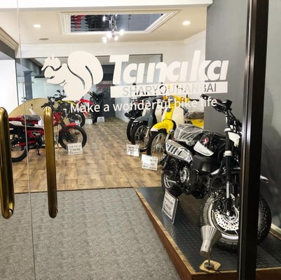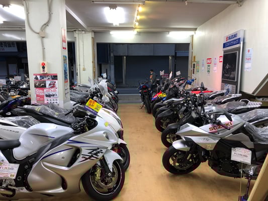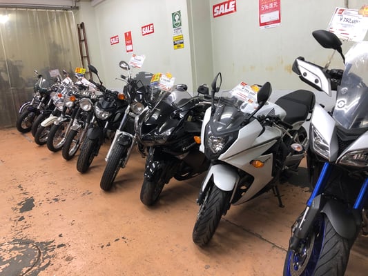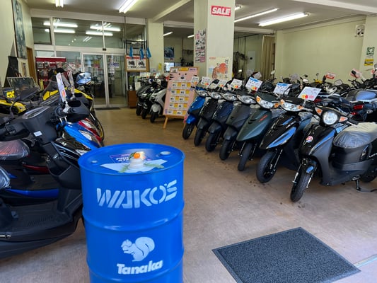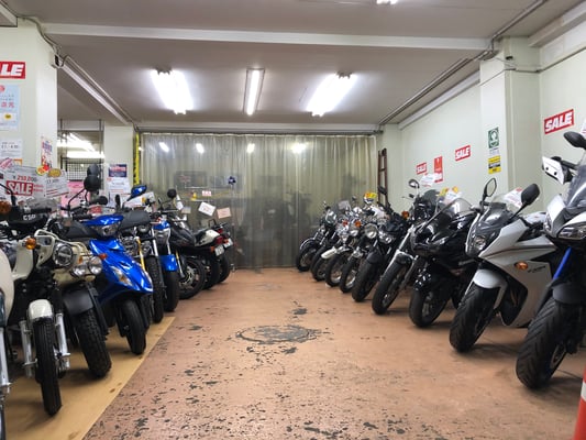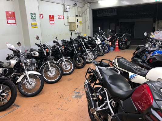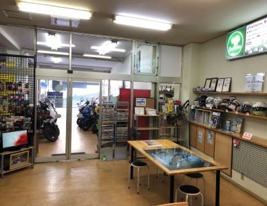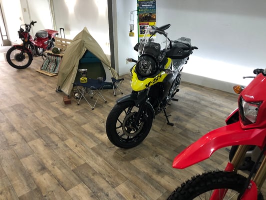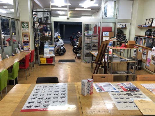 アットホームでオープンな明るい店内ではバイクをご自由にご覧いただき、ごゆっくりお過ごしいただけるようにしております。