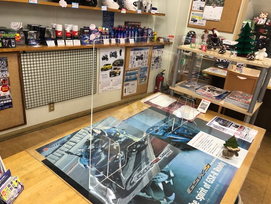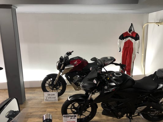 店舗向かいの第2展示場では懐かしのバイクの展示やツーリングビデオ・レースビデオなどを放映しております。